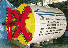 The Dot Tunneling Method is applied for an earth pressure shield machine with interlocking spoke-equipped multiple cutters that are positioned in the same plane to construct tunnels of double or triple cross sections.