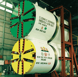 - Construction period can be shortened. Simultaneous construction of multiple tunnels and elimination of a mid-tunnel vertical shaft for constructing separate tunnels contribute to shorter construction period than that required for conventional methods.