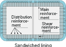 The lining of the rectangular shield tunnel has an effective sandwiched structure. The outside of the tunnel has a steel-concrete composite structure composed of steel shells that are used as main tension members. The inside has a reinforced concrete structure.