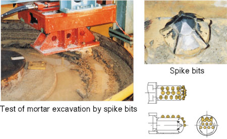 The newly developed high-performance "spike" bit is capable of penetrating and cutting the earth when the overcutter is expanded or contracted, and before and after the cutterhead is wagged.